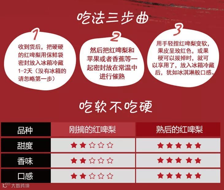 不同于其他脆梨,红啤梨的推荐吃法是“吃软不吃硬”!
