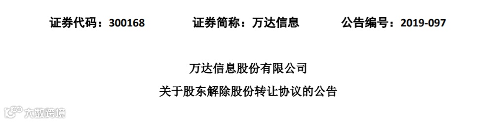 对于此次股份转让终止的原因,万达信息称,截至2019年7月23日,由于出让方无法达成《股份转让协议》生效条款,交易双方签署的《股份转让协议》无法生效,出让方已向受让方申请解除《股份转让协议》。
