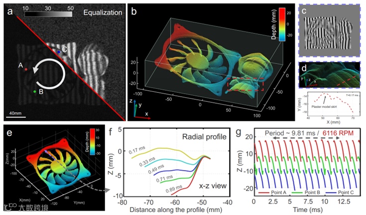 图3:SSSR-FPP方法对旋转叶片和静态被测物体的三维成像结果