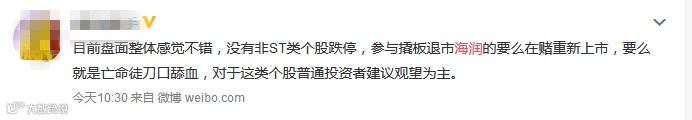 有市场人士向中证君分析,有资金利用博傻心理在交易,都知道会退市,但觉得不会轮到自己接最后一棒,去年的一些退市股也是在退市期的后半段被人爆炒。