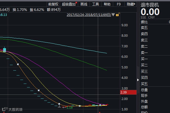 退市昆机在2018年6月21日开板后,股价从最低的1.21元上涨至退市前的1.47元,涨幅21%。