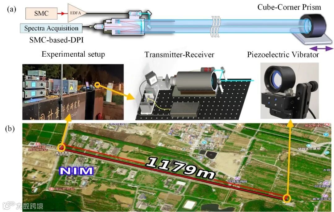 该研究团队成功搭建了基于频域干涉的长距离测量系统,进行了系列技术创新与工程开发: