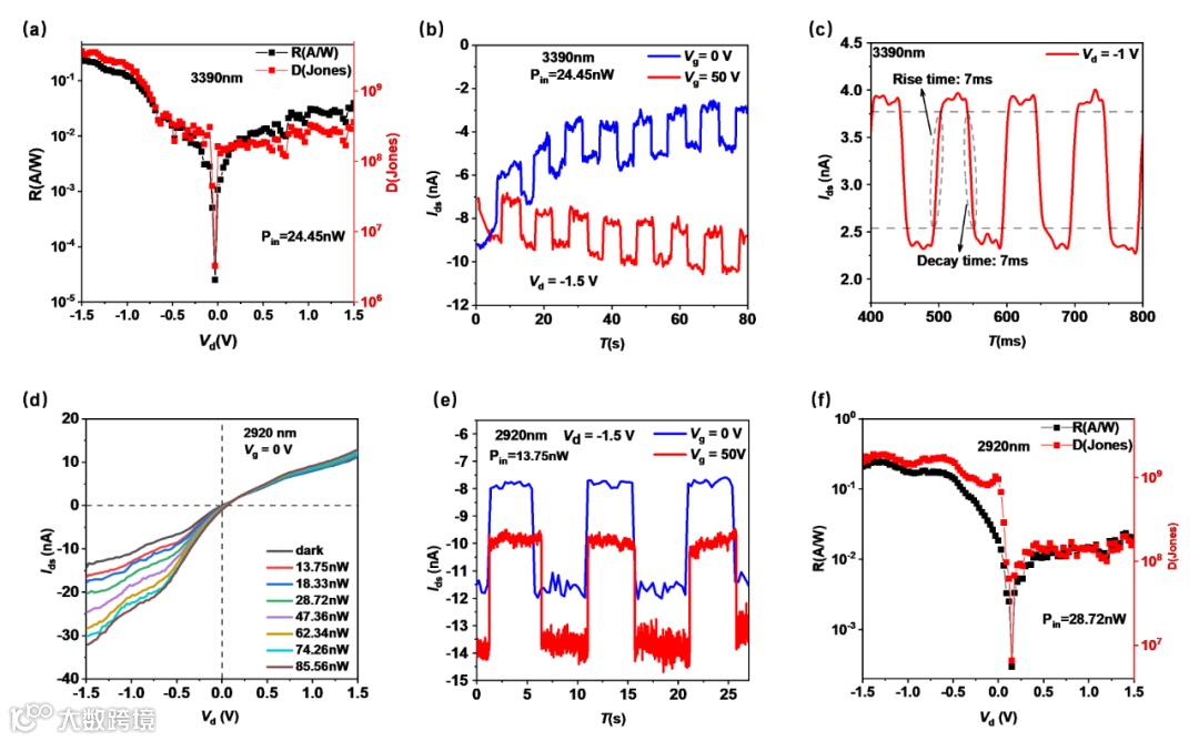图2 器件在中红外波段的光电性能表征