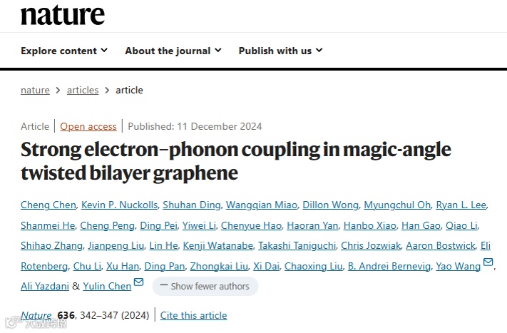 原文详情:Chen, et al. Strong electron–phonon coupling in magic-angle twisted bilayer graphene. Nature. (2024). https://doi.org/10.1038/s41586-024-08227-w。