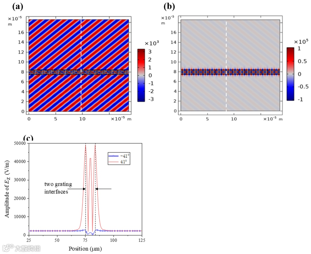 我们设计的光栅结构在上下界面形成了2个反射面,形成法布里-珀罗腔。腔的共振条件为