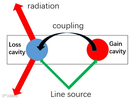 正是由于腔模相反的属性,当它们处在同一个结构中,就会产生特殊的耦合效应,这种耦合效应导致只有损耗腔产生放大的远场辐射,而增益腔只是起到能量的供应,类似于能量中转的功能,没有产生远场的辐射。