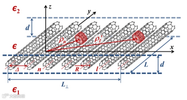 近年来,碳纳米管(CNs)在光学纳米材料的研究中越来越热门。这些中空的石墨烯圆柱体直径为一纳米至几纳米,长度不超过一厘米,在器件应用发挥出重要作用。目前,CN已成功集成到小型电子,机电和化学设备中,在光吸收和散射光谱,电子能量损失光谱,量子电子传输和一般的集体电磁场领域已证明了CNs的强大潜力。基于碳纳米管的尺寸减小的材料(例如周期性和准周期性的平面平行CN阵列和薄膜)可通过改变组成CN的密度,直径和手性来提供显著的稳定性,柔性以及其他物理特性的精确可调性。目前,薄壁和超薄的单壁CN(SWCN)和相关系统的周期性排列阵列正处于实验开发过程中。如果人们知道如何控制其CN阵列的集体激发,例如激子,等离激元及其相互作用,则可以控制CN阵列的特性。CN周期性允许形成等离激元带,由此周期性的CN阵列和膜应在近场中表现为ε-接近零的等离激元超材料(MM),而在远处仍保持强光吸收剂和偏振器。