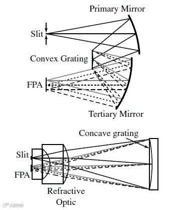 当今大多数成像光谱仪都使用Offner-Chrisp光学配置,因为它可以出色地控制称为像差(aberrations)的光学误差。然而,这些仪器通常都是大尺寸的(狭缝到主镜32cm,主镜顶到三镜底20cm),因此限制了它们在某些场景中的应用。