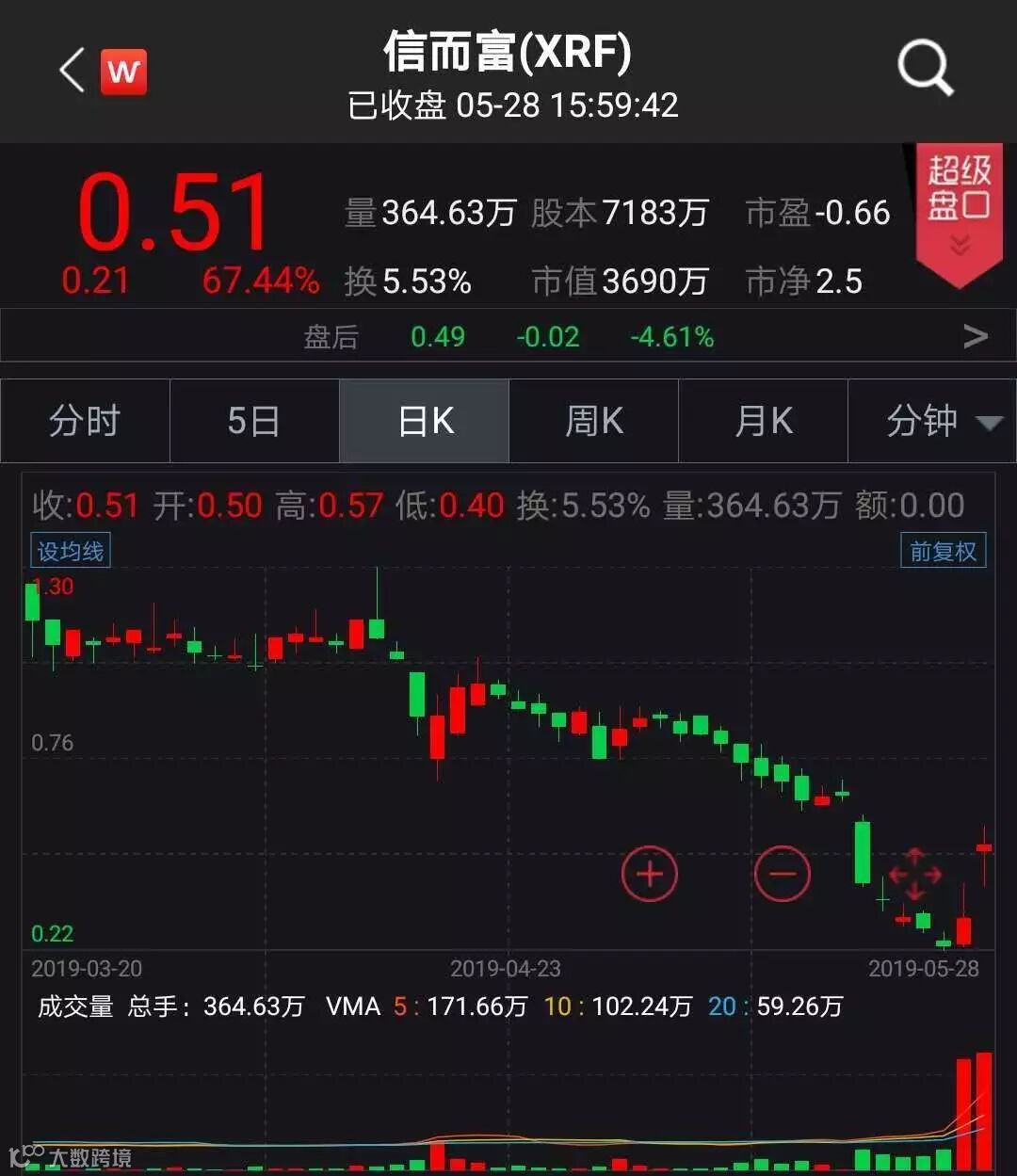 中概股涨跌互现 信而富大涨逾67%