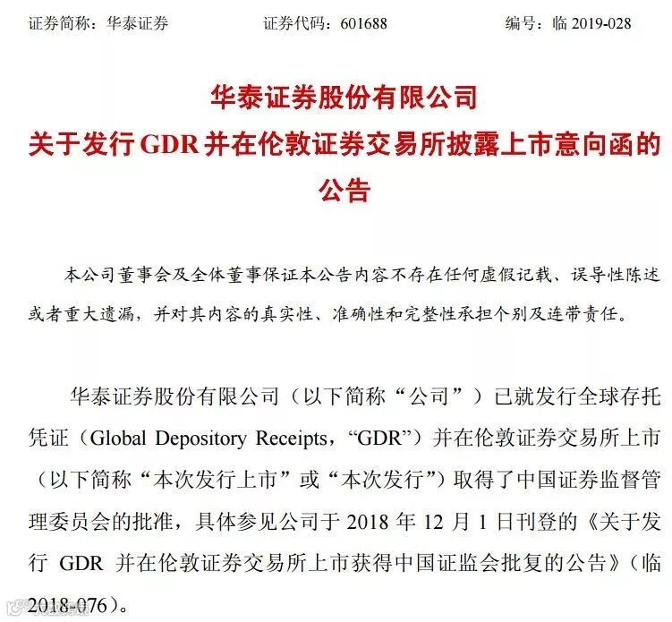 如本次GDR成功发行上市,华泰证券将成为首家通过沪伦通机制登陆伦敦证券交易所的中国公司。