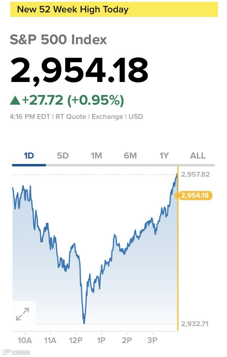 在周三美联储议息会议之后,鲍威尔鸽派表态,市场欢欣鼓舞。周四特朗普发推特“敦促”美联储降息,进一步提升市场预期。受此影响,周四美股强势上攻,标普500涨1%收2954.18点,道指收26753.17点,涨近250点,纳斯达克涨0.8%收8051.34点。