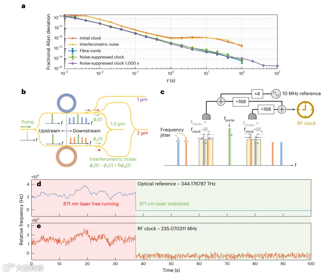 近日,美国 普渡大学 (Purdue University)Kaiyi Wu, Nathan P. O’Malley等,在Nature Photonics上发文,采用游标Vernier双梳方案,对稳定的 871 nm 超窄线宽连续波激光器进行光分频,使输出频率达到 ~235 MHz。(注:游标Vernier效应是将两个略有不同刻度的标尺或刻线叠加,以提高测量精度,在光学谐振器中,可以用来调节不同谐振器的频率)