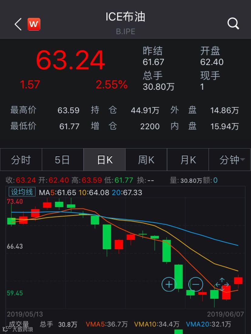 布伦特8月原油期货日K线图