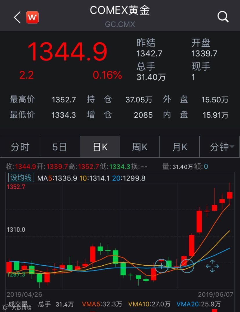 COMEX黄金期货日K线图