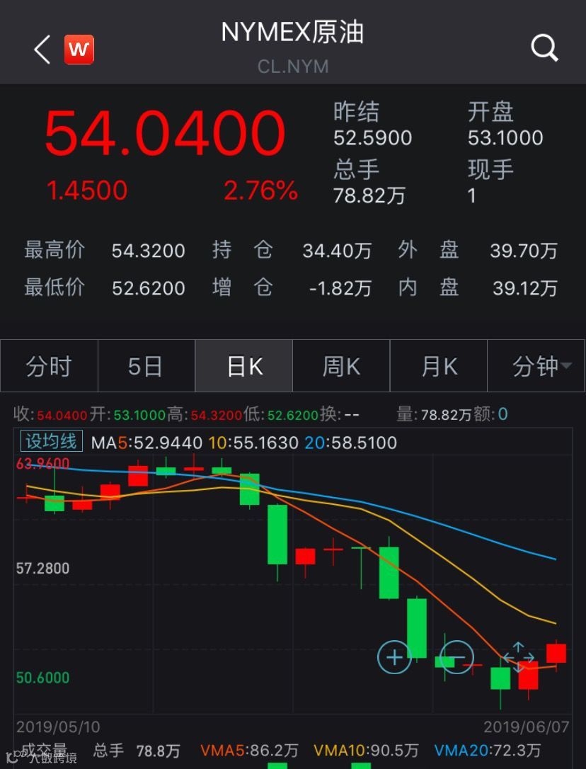 NYMEX 7月原油期货日K线图
