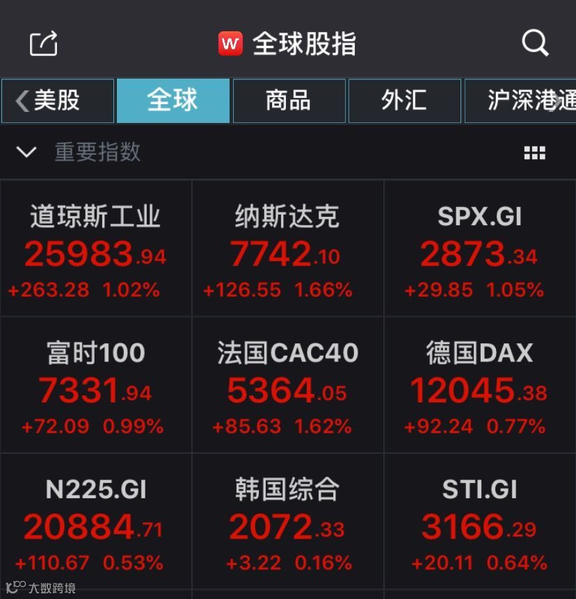 美股三大指数齐创