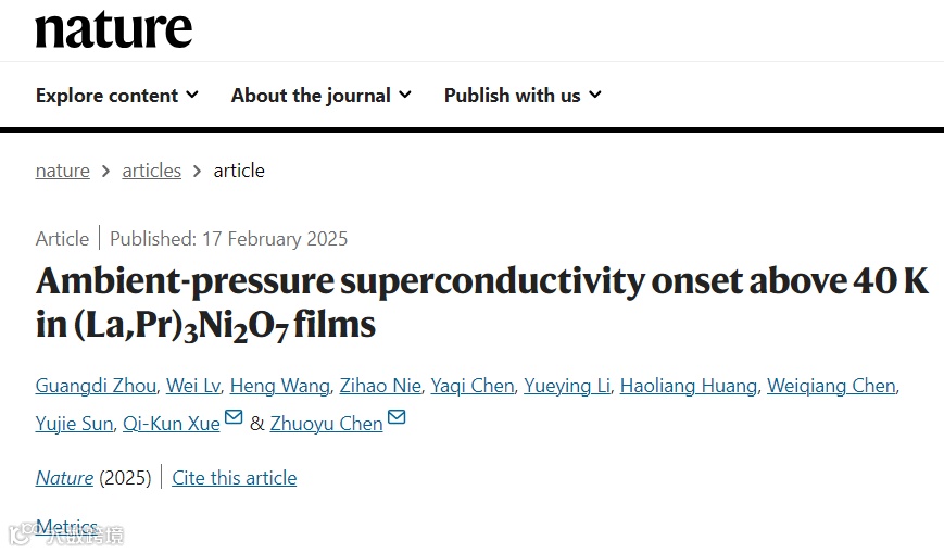 Zhou, G., Lv, W., Wang, H. et al. Ambient-pressure superconductivity onset above 40 K in (La,Pr)3Ni2O7 films. Nature (2025).