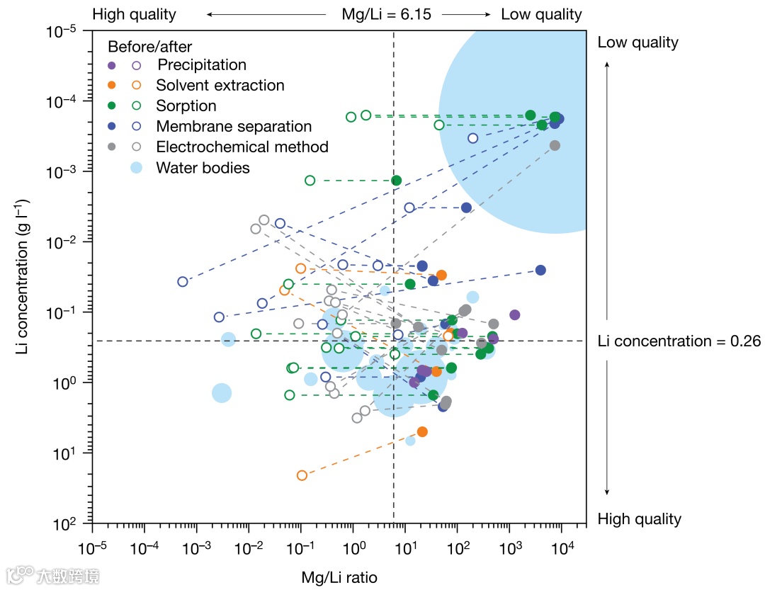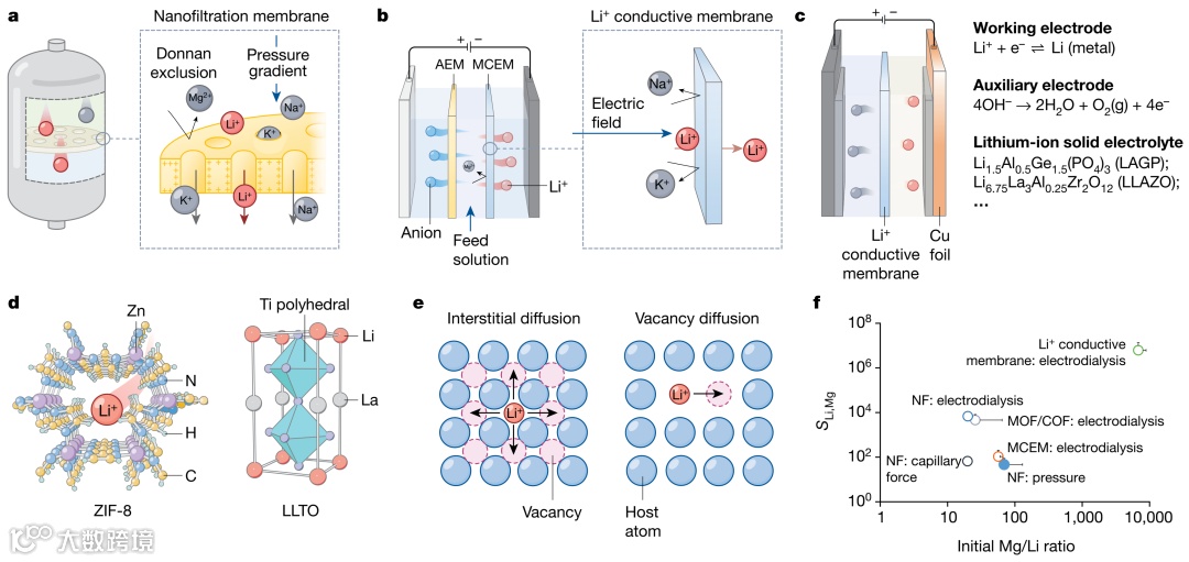 南京大学周豪慎教授与何平教授领衔、杨思勰助理教授为骨干的团队长期致力于海水和卤水提锂技术的研究与开发。团队针对当前可再生能源的迅猛发展,作为电池核心材料的锂却面临着供需失衡、开采过程高能耗、高污染以及资源消耗严重等一系列问题,深入而全面地研究了已知的含锂水域及其相应的提锂技术,首次提出了“低品质卤水”这一概念,并强调其在全球锂资源可持续供应中的关键作用。在此基础上,该团队详尽地整理和比较了针对低品质卤水型锂源的多项新型提锂技术,通过大量数据可视化分析,概括了各种技术所面临的痛点和挑战。更为关键的是,团队从分离过程的基本原理出发,系统地剖析了各类技术路线背后的物理化学机制,阐述了锂元素与干扰离子的分离原理及策略,提出了锂离子分离的驱动力与能级差理论,为未来新型锂资源提取技术的发展指明了方向。北京时间2024年12月12日零点,该研究成果以“Lithium extraction from low-quality brines”为题以综述形式发表在Nature期刊。通讯作者为现代工程与应用科学学院何平教授和周豪慎教授,南京大学作为该工作的唯一完成单位。功能材料与智能制造研究院的杨思勰助理教授和现代工学院2020级博士生王义钢为共同第一作者,2021级博士生潘慧也为该工作做出了重要贡献。(论文链接:https://www.nature.com/articles/s41586-024-08117-1)