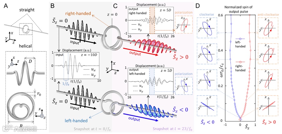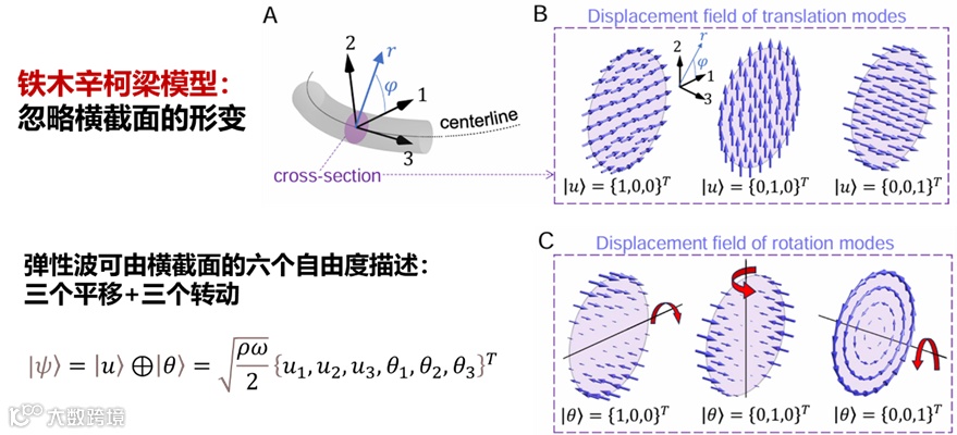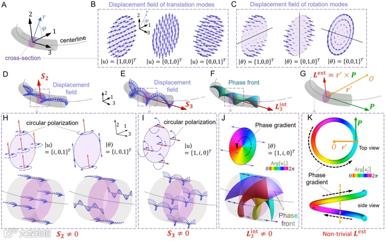 图1:弹性波导横截面的平移,旋转及其对应的位移场(图B&C中的蓝色箭头)。