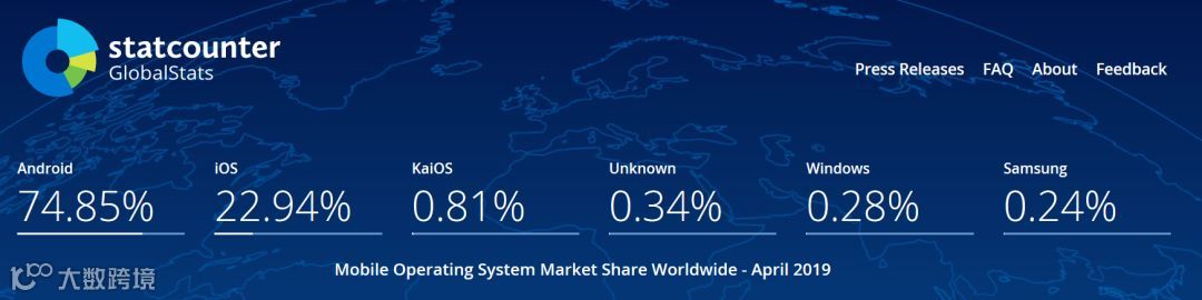 根据Statcounter数据,截至2019年4月份,Android和iOS垄断了全球手机操作系统近98%市场。