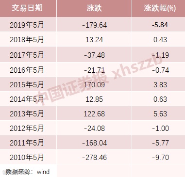 沪综指历年5月涨跌幅