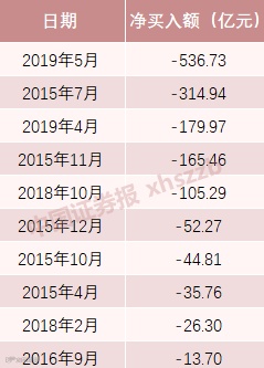 历次北向资金月度净流出规模排行