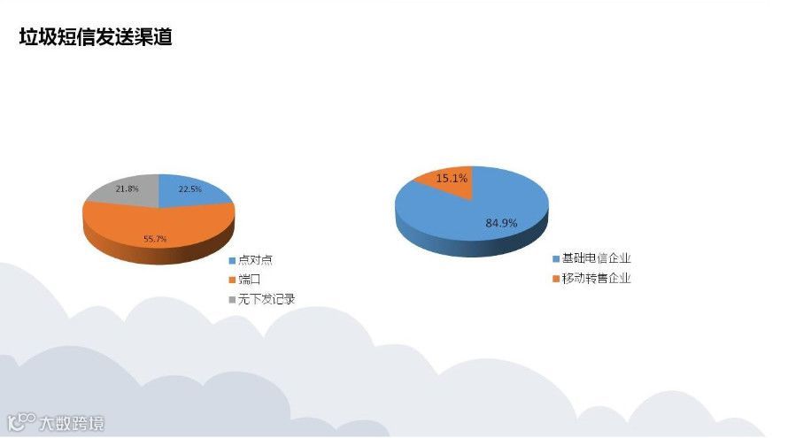骚扰短信方面,端口类短信被举报投诉量62132件,占总量的71.2%;移动转售企业点对点短信被举报投诉量13209件,环比上升53.4%。