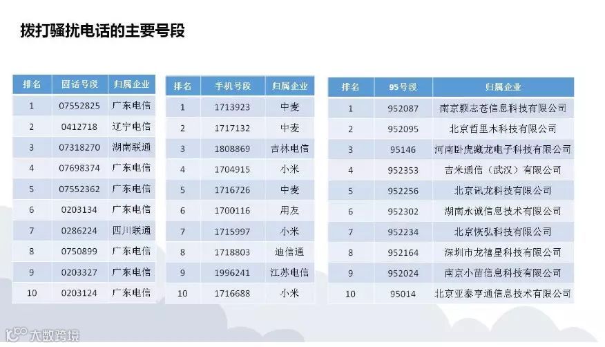 5月17日,工信部信息通信管理局针对近期“95”号码和移动转售业务“170”“171”等号段拨打骚扰电话严重扰民、群众举报投诉居高不下等突出问题,分别集中约谈了南京颢志苍信息科技有限公司等20家呼叫中心企业和远特(北京)通信技术有限公司、小米科技有限责任公司等10家移动转售企业。