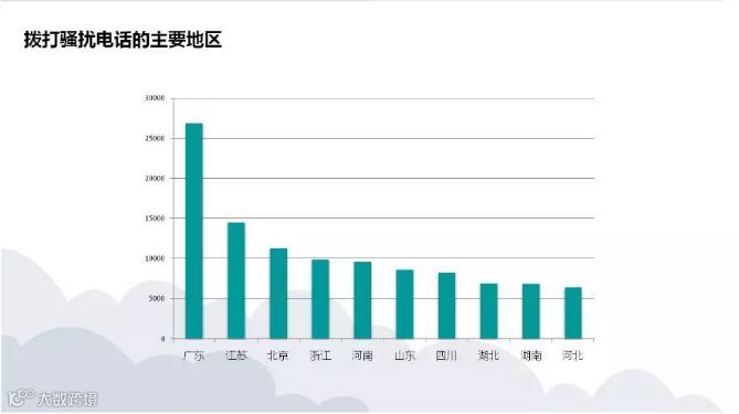 地域上来看,无论是骚扰电话还是垃圾短信,广东、江苏、北京、山东都是重灾区。