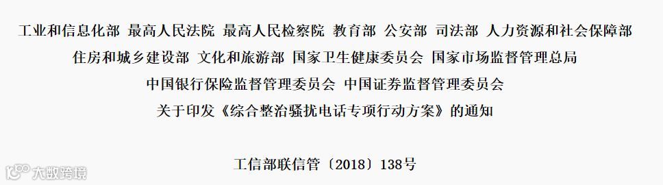 为贯彻落实国务院相关部署要求,着力整治骚扰电话扰民问题,切实净化通信服务环境,工信部、最高法等决定自2018年7月起至2019年12月底在全国范围内组织开展为期一年半的综合整治骚扰电话专项行动。