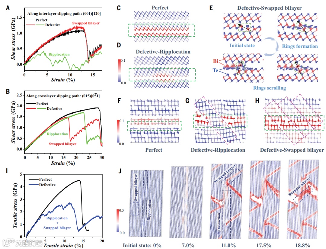 相当时,它们可以共存于晶格内部并容易发生改变。如图2A所示,当组成落在红色方框范围内时,内在缺陷A和B可以同时产生。这些内在缺陷的相互作用、聚集和运动可能进一步形成高密度、多样化的微观结构,将脆性材料工程化为塑性材料。