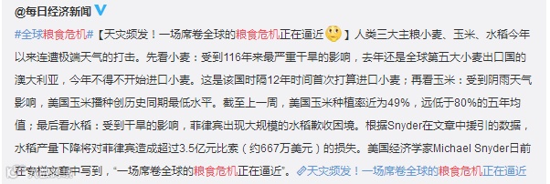 全球主要粮食价格普遍上涨