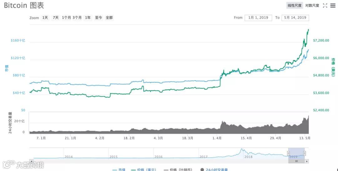 今日,比特币价格重新站上了8000美元大关。5月以来,比特币呈现摧枯拉朽之势,已连续十数天上涨,今日盘中一度达到8300美元,刷新去年7月底以来新高,全球数字货币市值更是突破了2400亿美元。