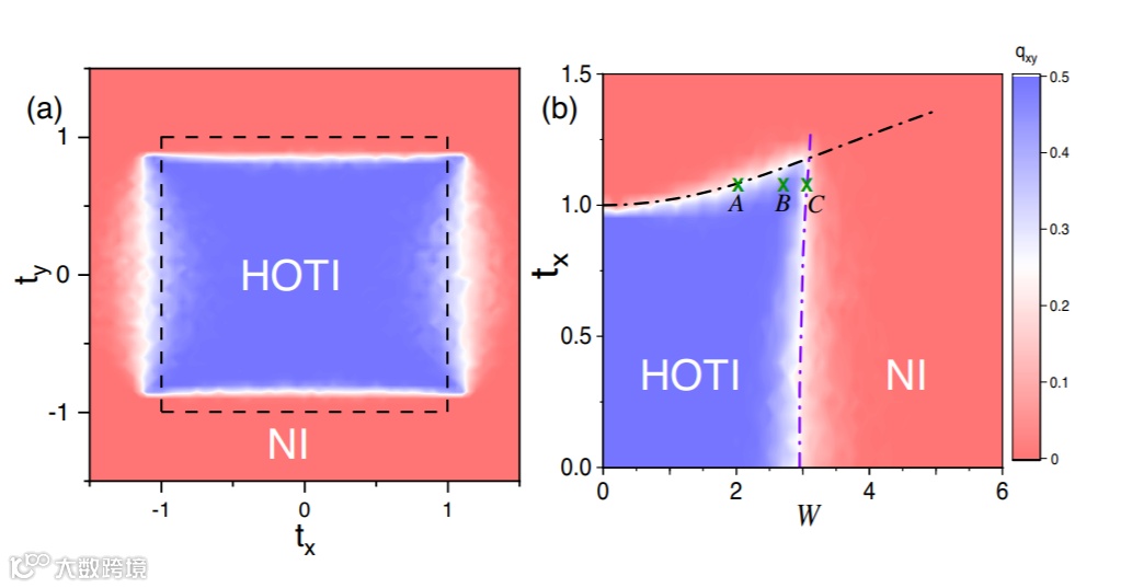 无序在凝聚态系统中无处不在。各种各样的基本现象,例如安德森局域化和近藤效应,都与无序系统密切相关。如果将无序包含在物质的拓扑相的研究中,则会出现令人惊讶的拓扑安德森绝缘体现象,这表明无序与拓扑之间是非平庸的相互作用。最近,固体拓扑不变性的概念已推广到更高阶。这些高阶拓扑绝缘体,像它们的常规表亲一样,具有由整体拓扑不变量决定的边界状态,但其尺寸甚至比后者低。在高阶拓扑阶段中,量子化电四极子绝缘体(QEQI)是一个典型的模型,其特征在于在体态上的量子化电四极矩和角态上的零能量模式。从一开始,QEQI就被认为是一种拓扑晶体绝缘体,其四极矩的量子化受基础晶体对称性的保护。显然,在这样的系统中,由无序引起的任何非平庸效应的存在都构成了不可行的条件,在该系统中,所有晶体对称性必定会被破坏。因此,尽管有一些相关的努力,但是对QEQI的无序效应,特别是其产生的拓扑相变的系统研究仍然是一个悬而未决的问题。