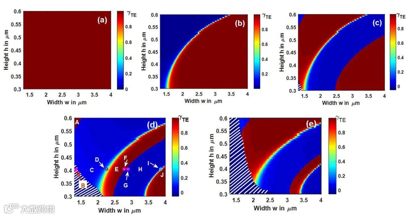 高对比度平台上的光子器件具有固有的混合型导模。它们的6个场分量(Ex, Ey, Ez, Hx, Hy, Hz)都是非零的,不像具有纯横向电(TE)和横向磁(TM)模式的平面波导。然而,一般来说所有模态都有一个主要的E和一个主要的H分量。这种模称为准横向电(qTE)模和准横向磁(qTM)模。如果绝缘子上硅和绝缘子上铌酸锂等高对比度波导在结构上存在折射率的垂直不对称和/或水平不对称,则在某些特殊模式下,电场的主分量和非主分量几乎相等。这种模态不能归入qTE或qTM模态,称为混合模态。当有效指数相似的两个正交偏振模相互耦合时,就会产生模杂化现象。偏振分离器旋转器的TM -TE高阶模转换采用了模式杂交区设计。这些组件对于实现偏振分集方案是必不可少的,它规避了高对比度波导中偏振相关的损耗和色散问题。它们也是用于相干光学系统应用的光电集成电路中的关键元件。与qTE和qTM模式相比,混合模式也显示出较大的群速度色散,这在可调时延和光信号处理应用中很有用。虽然杂化现象对模式转换器和延迟很有用,但在模式分复用(MDM)应用程序中,同样会导致高串扰。虽然报道了SOI纳米线和LNOI的混合模式,然而,导致混合模式的波导结构参数和其与工作波长之间的数学关系还没有被探索。