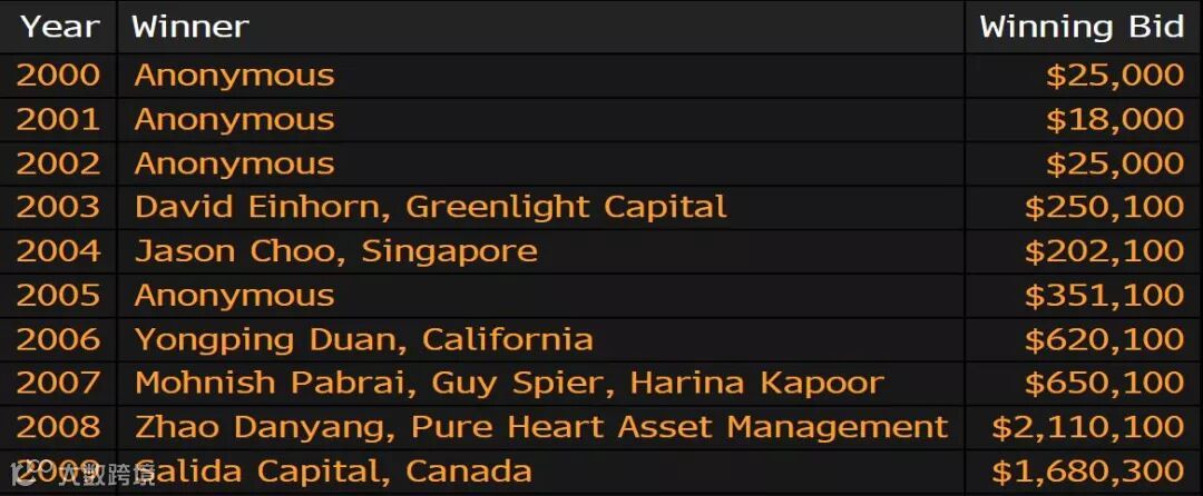 2016年-2018年,午餐又连续被匿名人士拍得。2019年,情况也是这样。