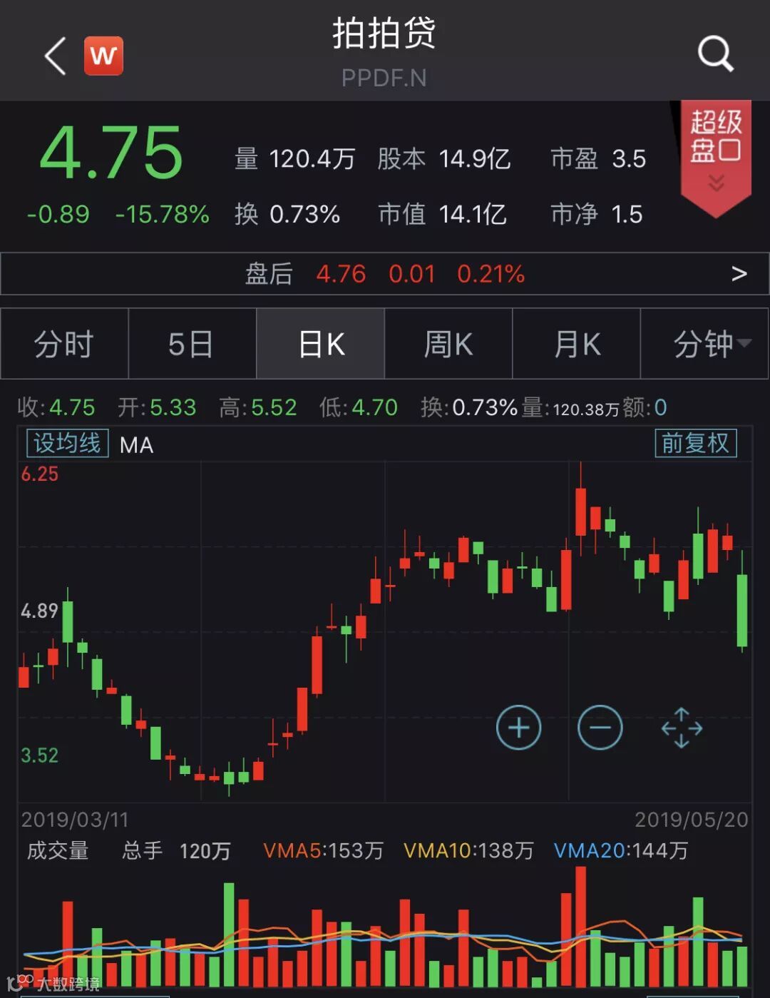 中概股普遍下跌 拍拍贷重挫逾15%