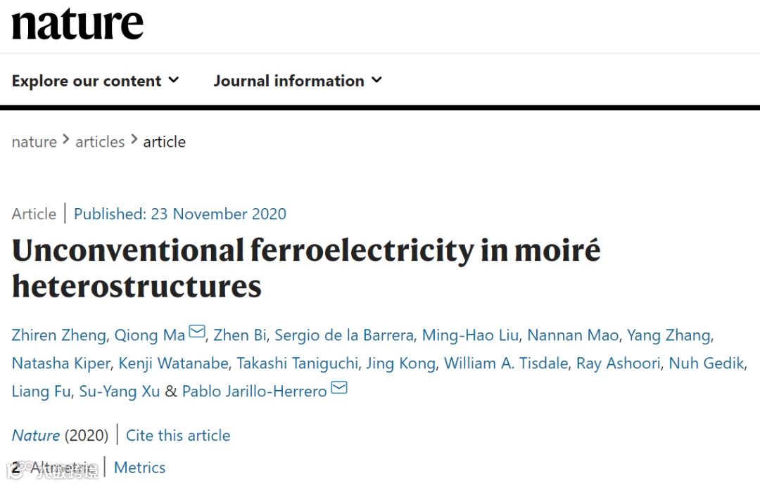 1.Zhiren Zheng et al. Unconventional ferroelectricity in moiré heterostructures.Nature 2020.