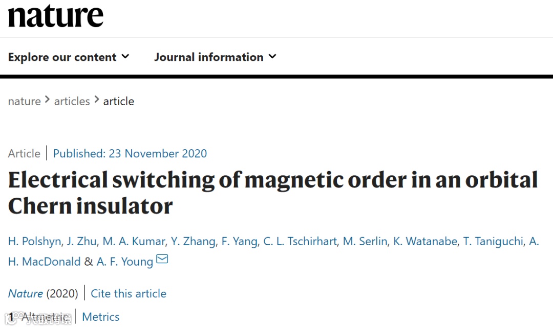 2.H. Polshyn et al. Electrical switching of magnetic order in an orbital Cherninsulator. Nature 2020.