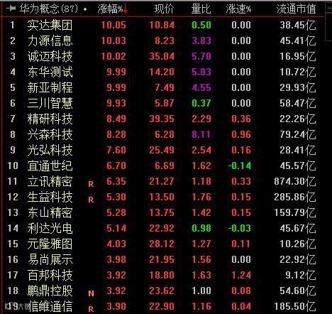 在A股市场,华为概念5月21日再度掀起涨停潮,通达信数据显示,其中,实达集团、东华测试连续4日涨停,力源信息、诚迈科技、新亚制程等连续3日涨停。