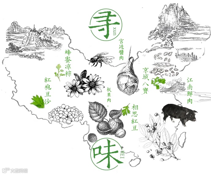 分别代表宫廷、江南水乡、少数民族、长江以北的不同口味与民俗。