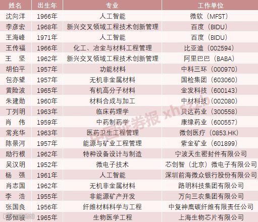 此次中国工程院531名候选人的名单中,来自企业界的候选人有114人,同比2017年增加了24位,其中不乏大家耳熟能详的企业及其技术领袖,也有不少A股上市公司。阿里巴巴首席技术官王坚,百度创始人、董事长兼首席执行官李彦宏,百度高级副总裁王海峰,美国国家工程院院士、微软全球执行副总裁沈向洋,比亚迪创始人、董事局主席兼总裁王传福、腾讯控股的微众银行首席人工智能官杨强等多位企业技术领袖榜上有名。