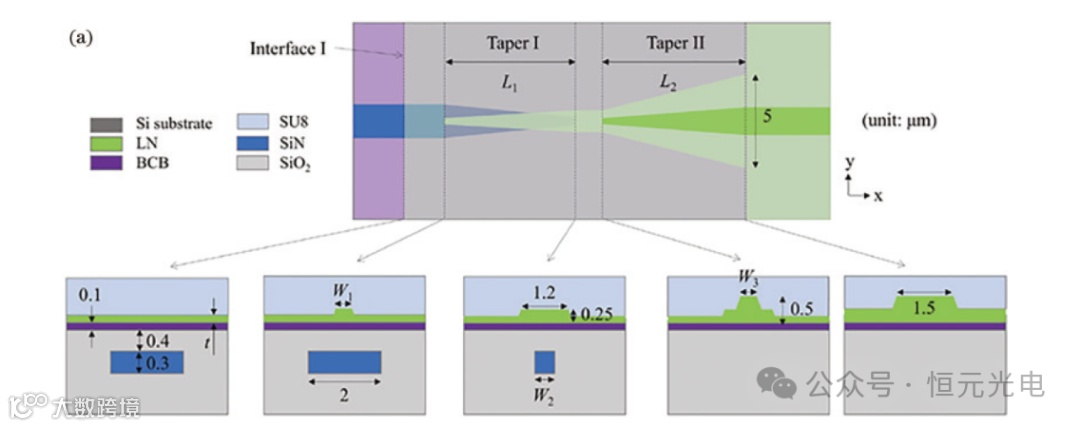 图 5 Si3N4和铌酸锂异质集成模式转换器与端面耦合器