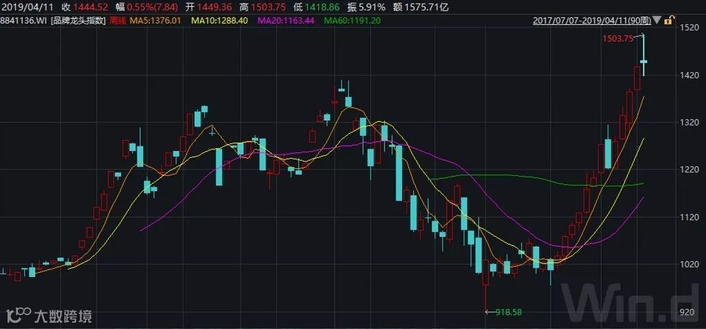 Wind品牌龙头指数走势(周线)