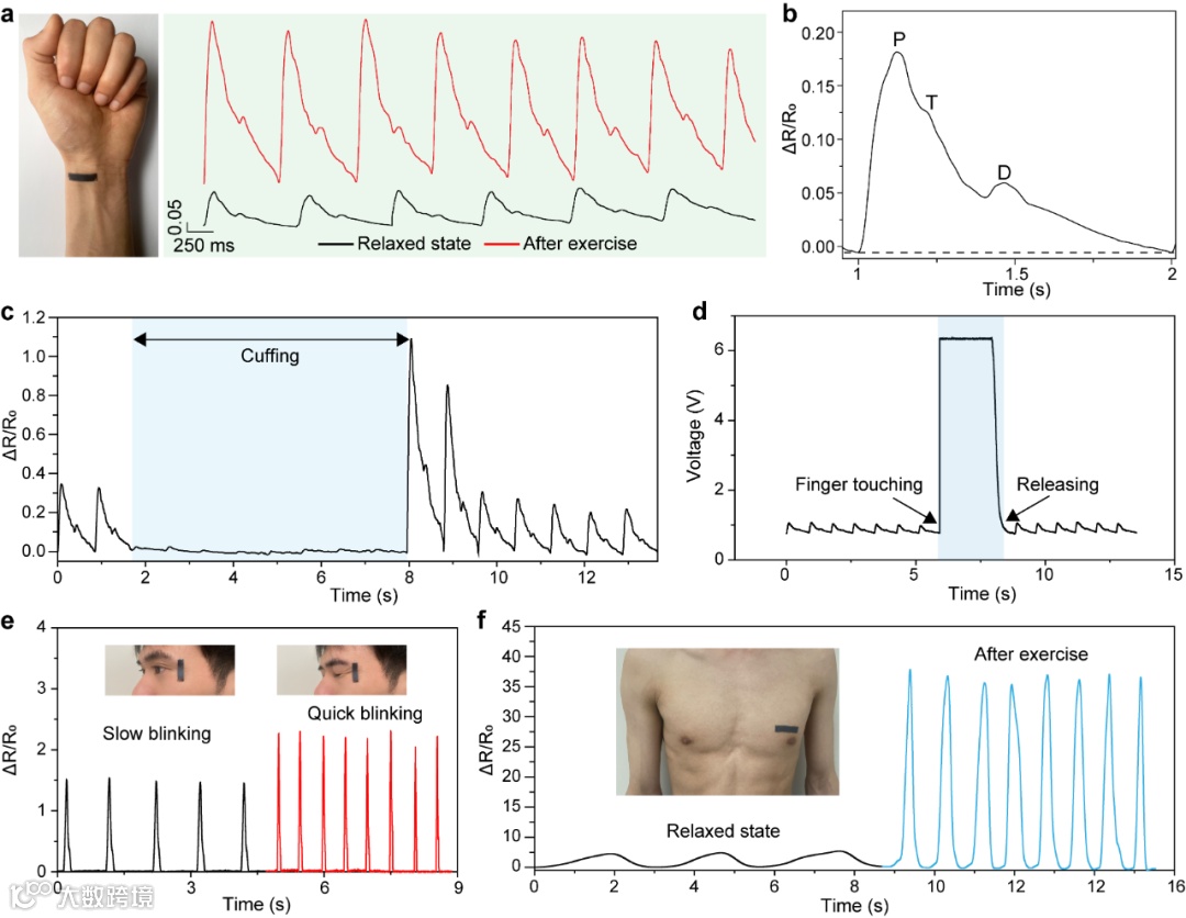综上所述,他们设计了一种基于弹性微裂纹MXene薄膜的柔性应变计,该薄膜可以在过度应变后自愈其传感特性。制造过程包括将MXenes喷涂到柔软的硅基板上,然后通过控制拉伸变形产生饱和微裂纹。所得到的装置在重复变形过程中表现出对微小应变的高灵敏度。由于软硅基板的弹性恢复,即使在远远超出其指定工作范围的操作后,MXene薄膜也可以恢复其原始的微裂纹形态和传感能力,使其能够承受过伸、扭曲、锤击和汽车滚动。通过对人体运动、生理过程和弯曲物体的监测,进一步证明了弹性微裂纹MXene薄膜的实用性。这样的设计有效解决了柔性应变片同时提高灵敏度和脆弱性的难题。机械驱动的自愈过程提供了一个可行的途径,以赋予高灵敏度应变计鲁棒性,在柔性可拉伸电子器件领域具有广阔的应用前景。