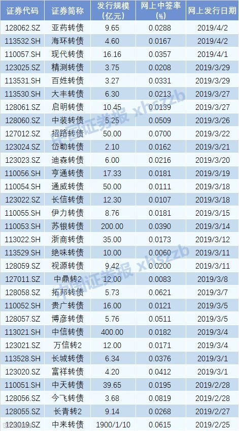 4月3日,海环转债、亚药转债披露的数据显示,其网上发行中签率分别只有0.0167%、0.0288%。