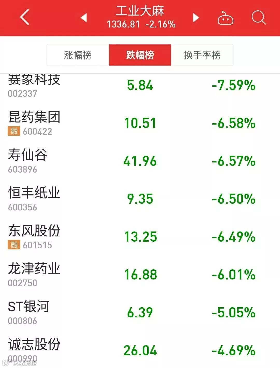 与此同时,部分概念板块炒作继续降温。同花顺数据显示,继昨日下跌7.28%后,工业大麻板块今日继续下挫,早盘一度跌逾6%,收盘下跌2.16%,部分个股跌幅较大。
