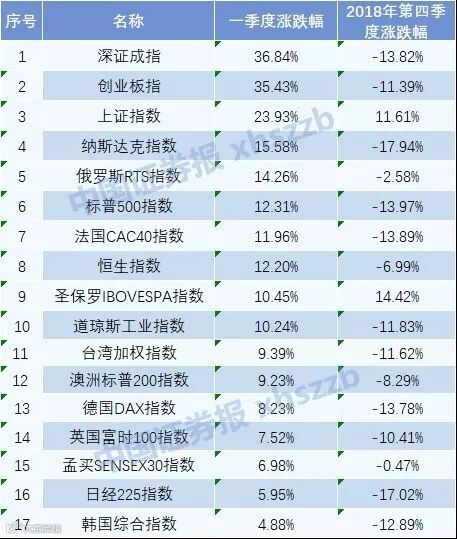 一季度,全球多个股指创下阶段性最大单月涨幅。