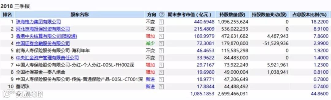 格力电器十大股东明细