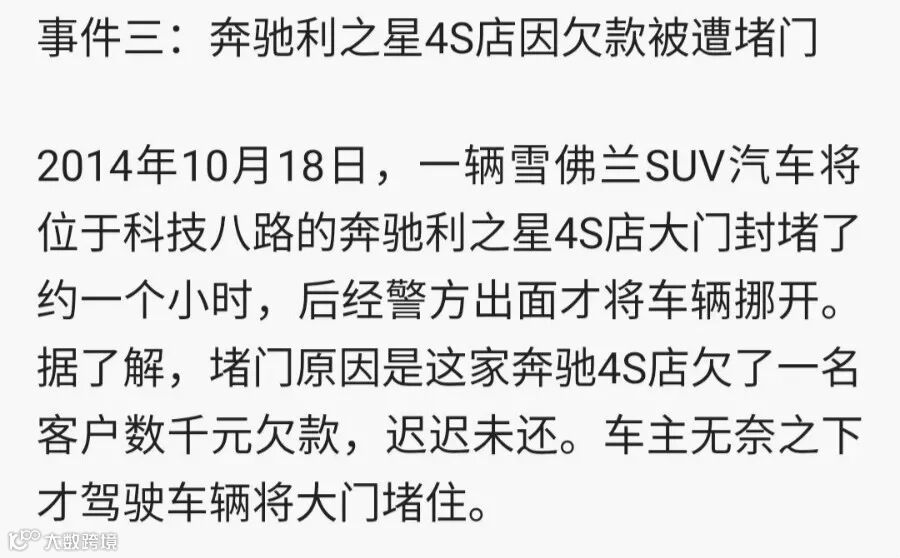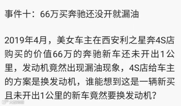 更让女车主感到气愤的是,西安利之星汽车有限公司对外宣称“已与该女子达成协议,但无法将双方达成的协议对外公布,是为了保护客户的隐私”,完全是子虚乌有,自己从未收到过任何奔驰官方、4S店官方给出的回复。这件事情并没有得到解决。